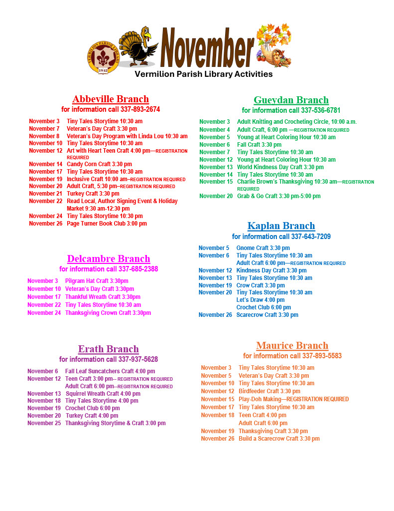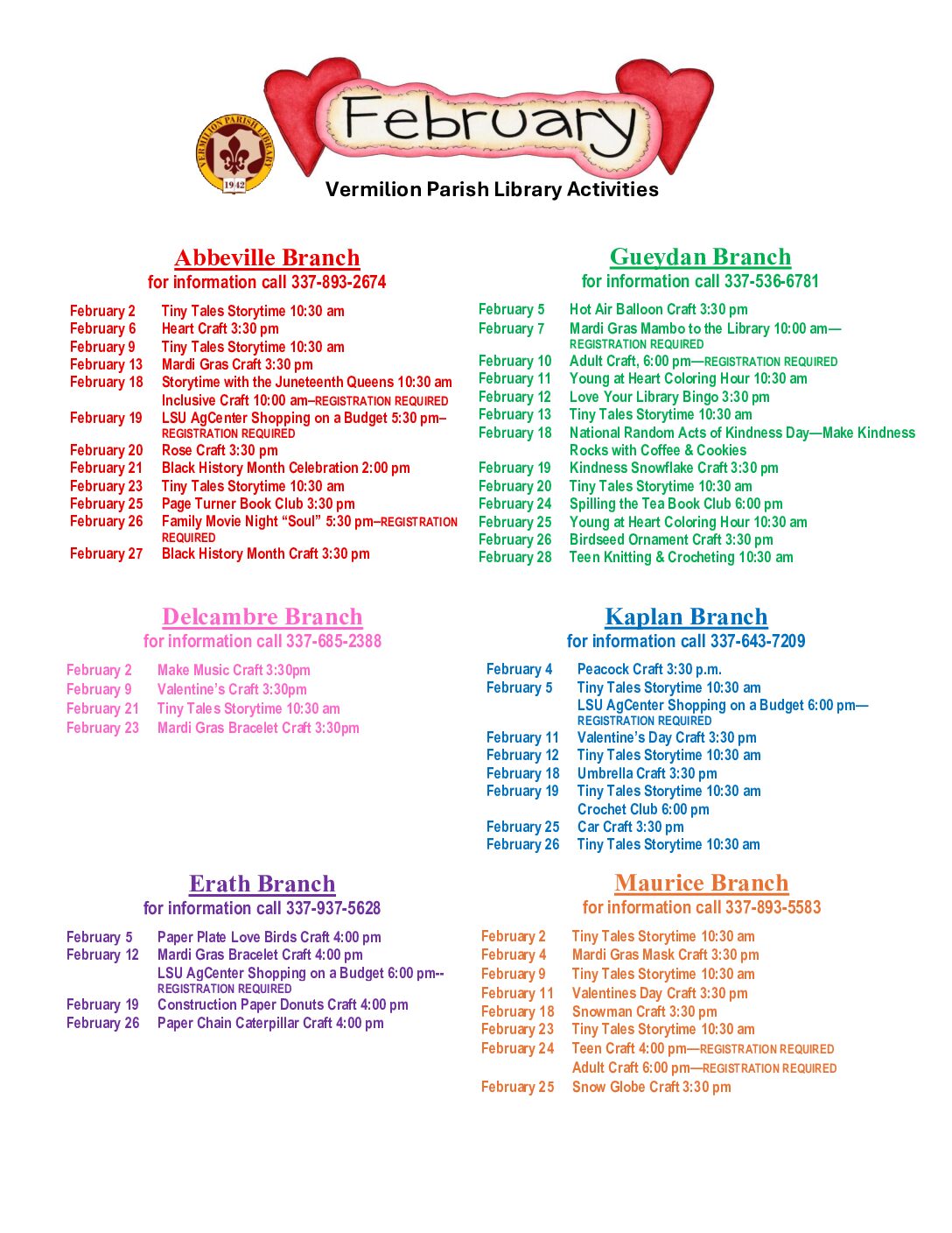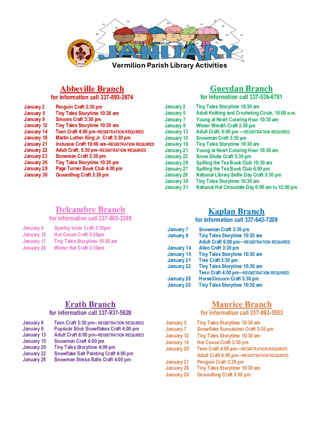 Check below for our most current monthly calendar of events. Click here to download a .PDF version of the most recent calendar.