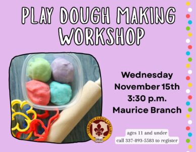 For more information call Kelly at 337-893-5583 or email maurice@vermilion.lib.la.us