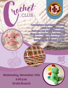 For more information call Elizabeth at 337-937-5628 or email erath@vermilion.lib.la.us.