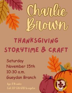 Charlie Brown Thanksgiving Storytime & Craft–Gueydan